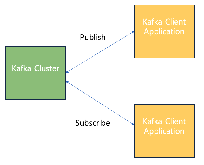 - 애플리케이션이 이벤트를 생성하여 Kafka 토픽으로 전송하고, Kafka 토픽에서 데이터를 읽어와 필요한 작업을 수행하거나 저장소에 저장