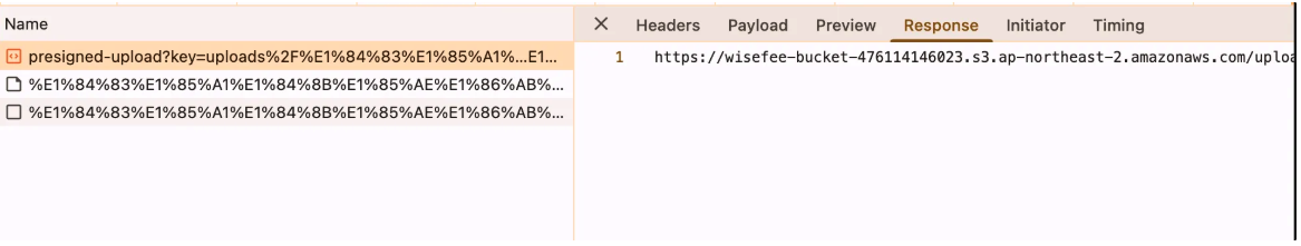 - 서버 → 클라이언트: Presigned URL 응답