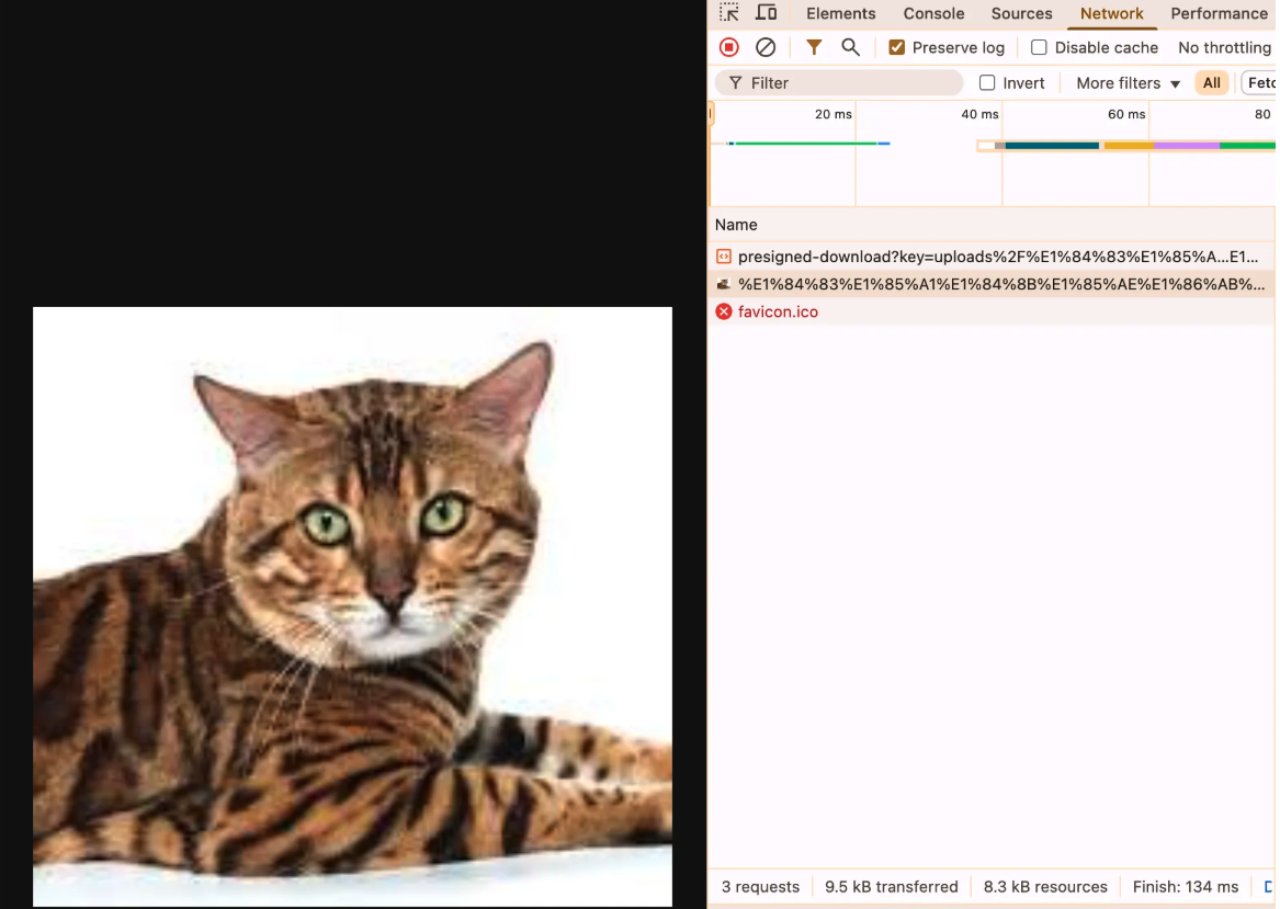 - S3는 Presigned URL 요청이 유효하면 파일(image.jpeg)을 직접 반환