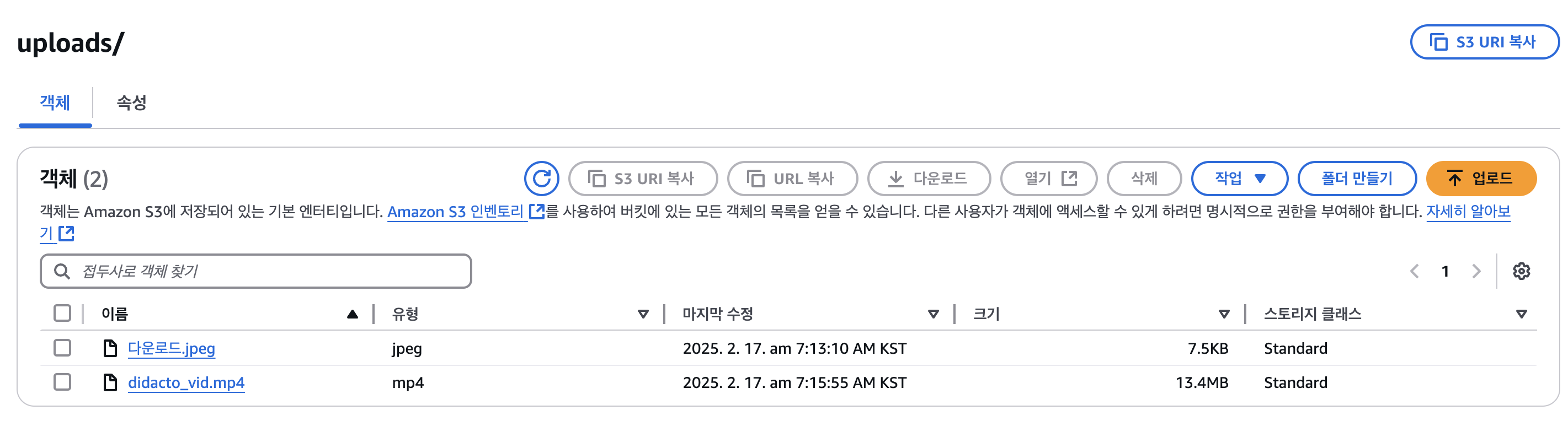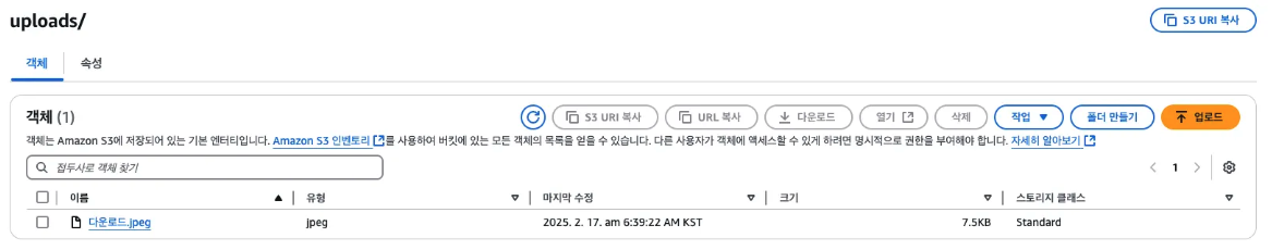 | [AWS + Spring] S3 : 파일 업로드 & 다운로드 (1) (개발 및 프로덕션 환경 연동 기본) (1) | 2025.02.16 |