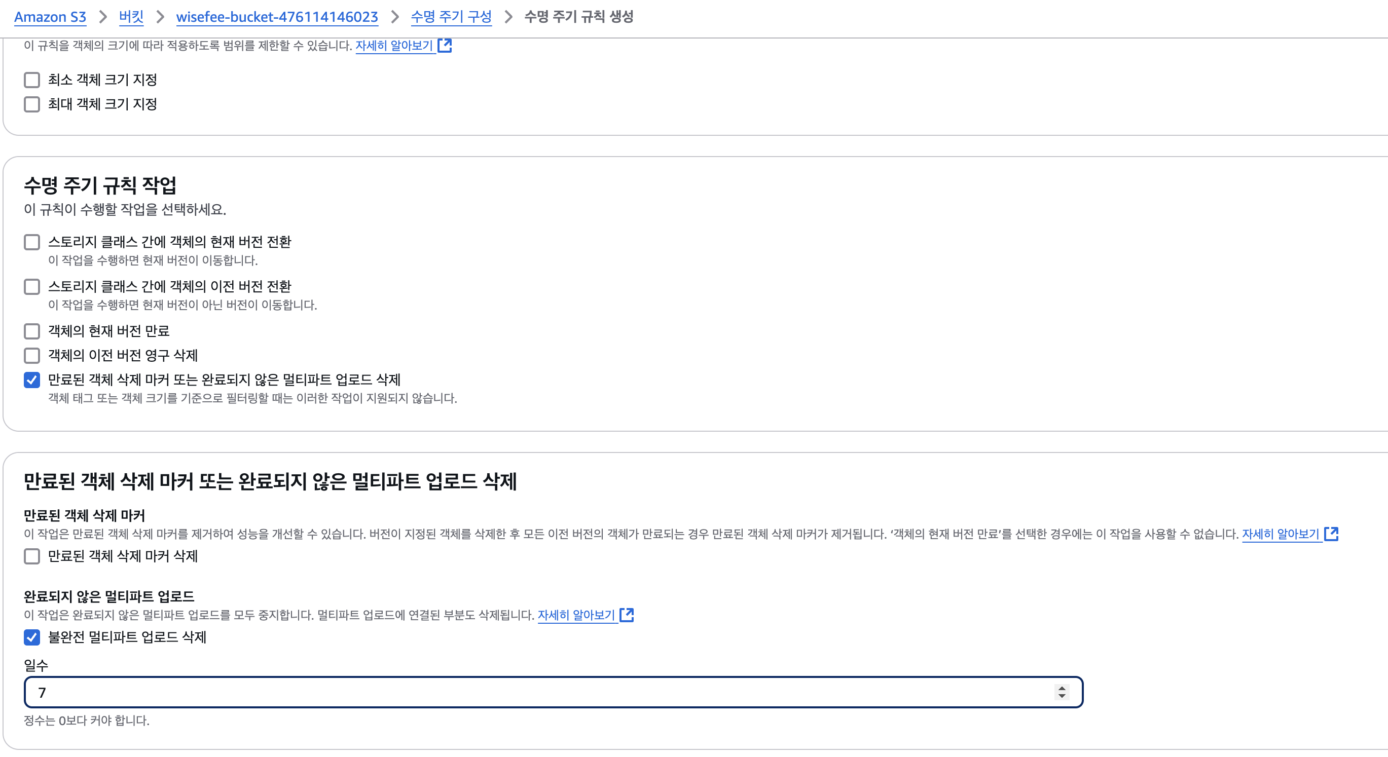 5. 유의점 : 버킷 수명 주기 설정